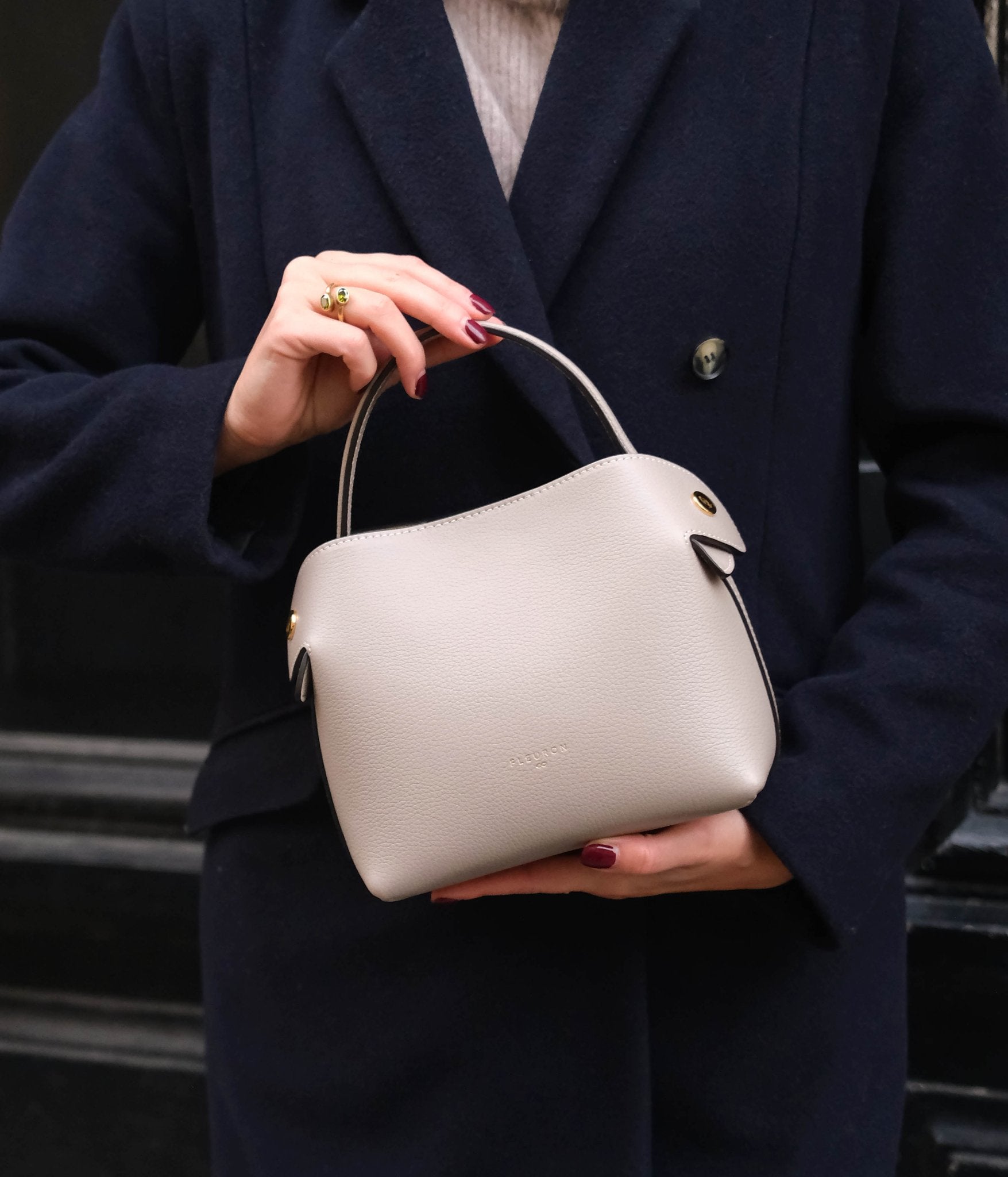 Handcrafted in our Italian atelier from grained calfskin and finished with gold-tone details, the Mini Swann Cashmere can be carried by hand, over the shoulder, or crossbody. It closes with an automatic magnetic clasp and opens to a bright beige interior. Its sides, fitted with magnetic folds, gently open to let the removable strap pass over the top for shoulder or crossbody wear, or fall gracefully when carried by hand.