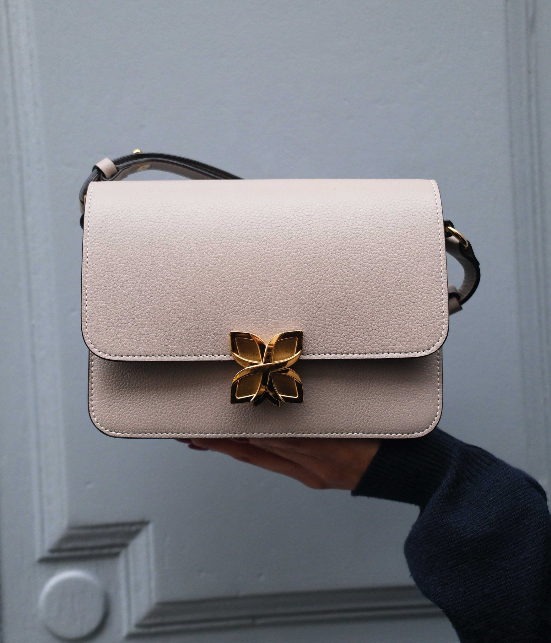 Its signature clasp, inspired by the hydrangea flower, adds a poetic and distinctive touch to this structured design. Inside, the bag offers a spacious and functional interior, thoughtfully designed to hold all your daily essentials with ease.