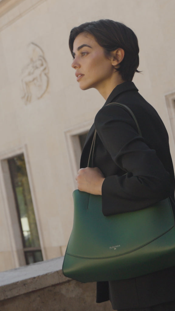 The Medium Oak tote in Vert Sapin stands out as a contemporary essential: a statement piece that blends depth, modernity, and timeless elegance.