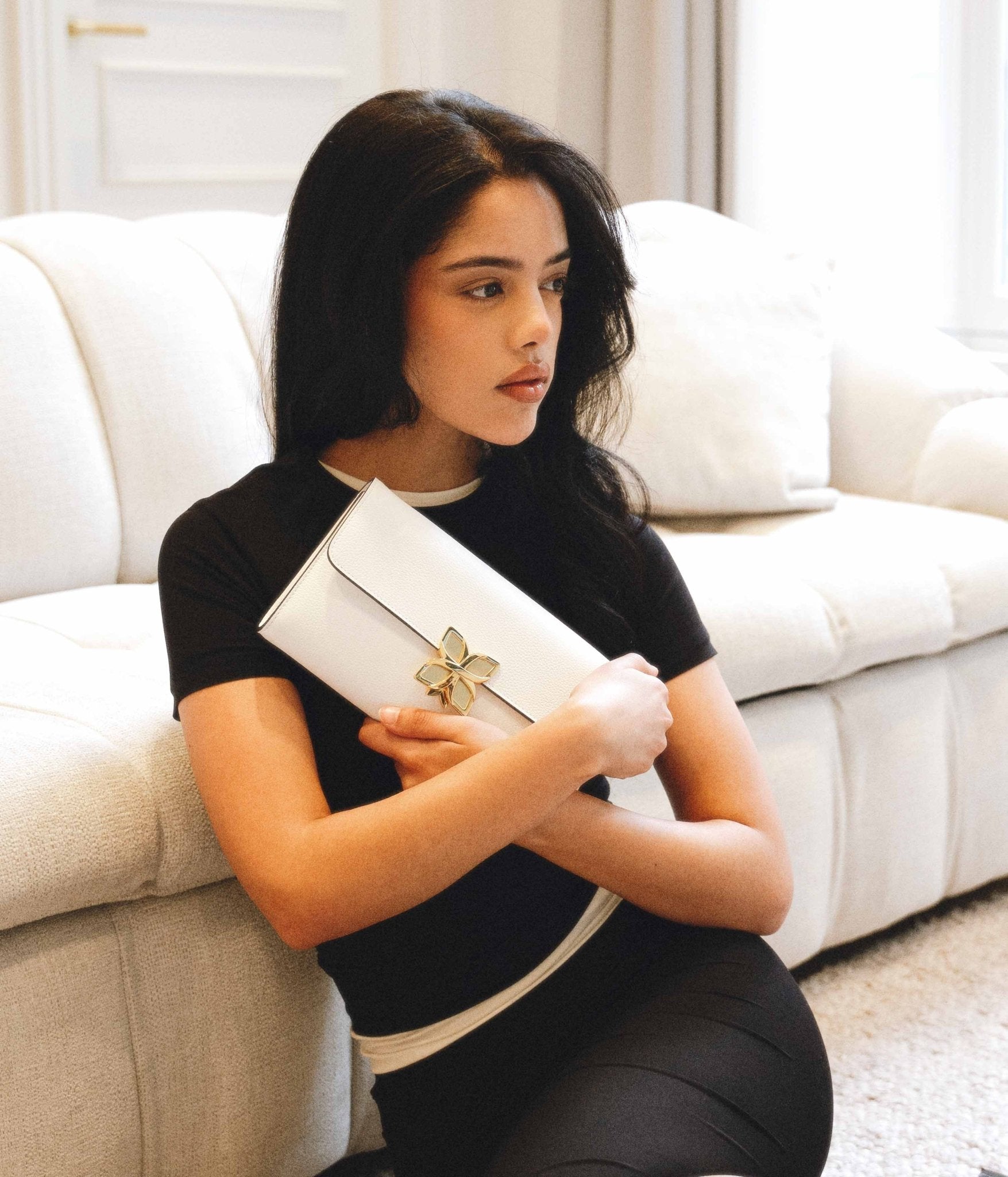 Let yourself be captivated by the luminous elegance of the Hortensia Clutch in Blanc Cassé, crafted from grained calf leather. Carefully made in our Italian ateliers, this design reinterprets the iconic Hortensia bag in a sleek, refined format, ideal for enhancing your outfits with finesse and modernity.