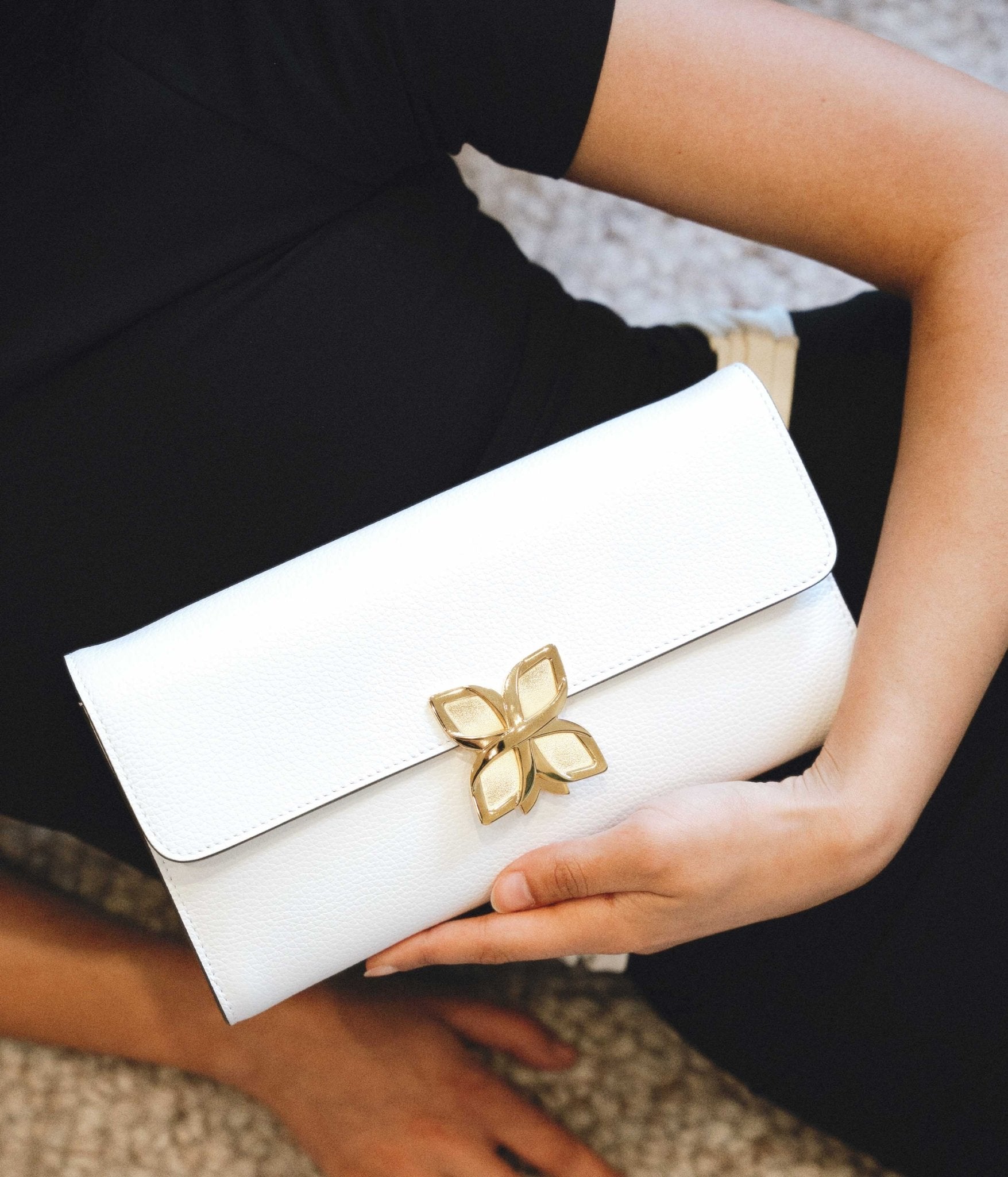 A refined take on the iconic Hortensia bag, the Clutch preserves its floral soul while reimagining it with a light, graceful touch. Its clean lines echo the softness of a petal, while its slender shape whispers of evening elegance.