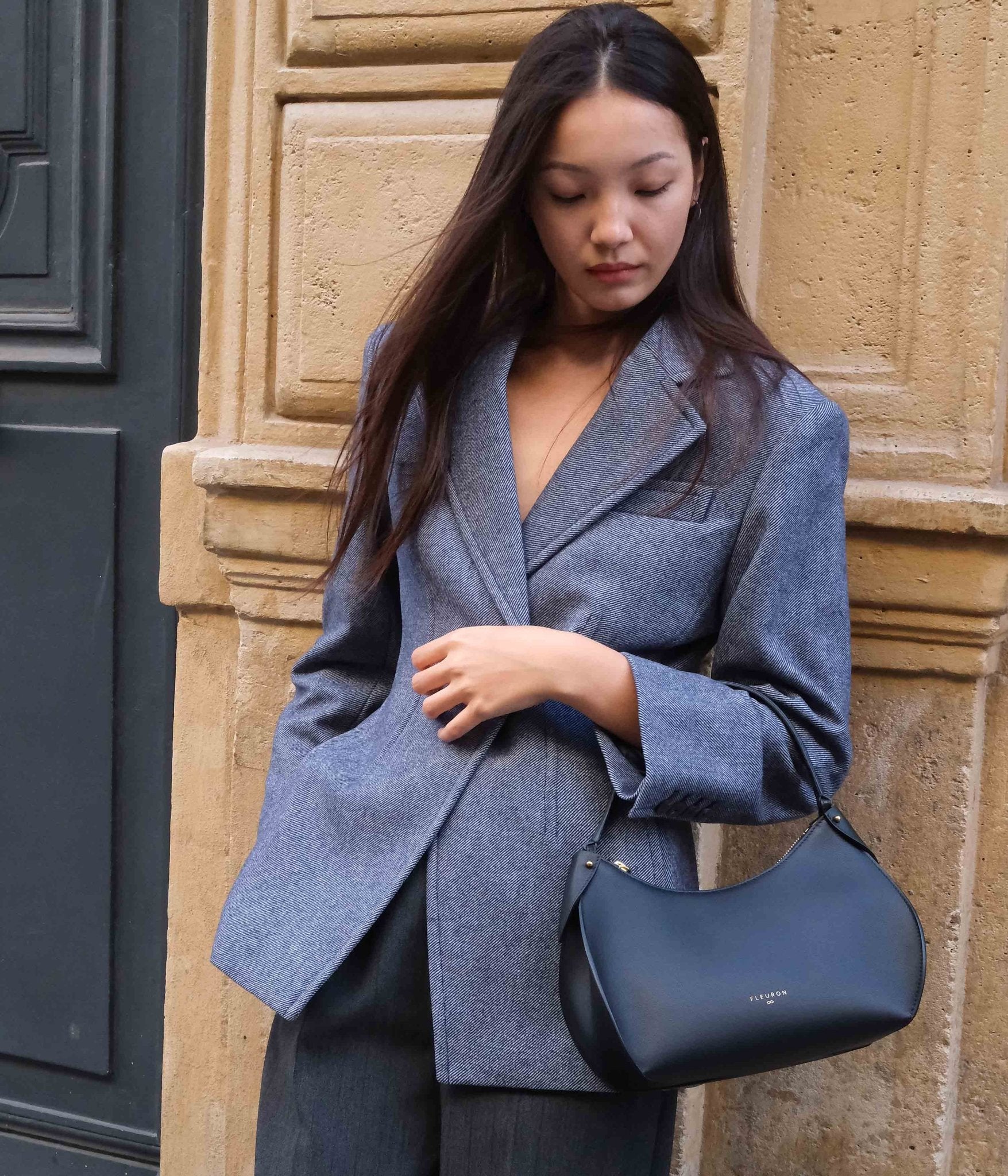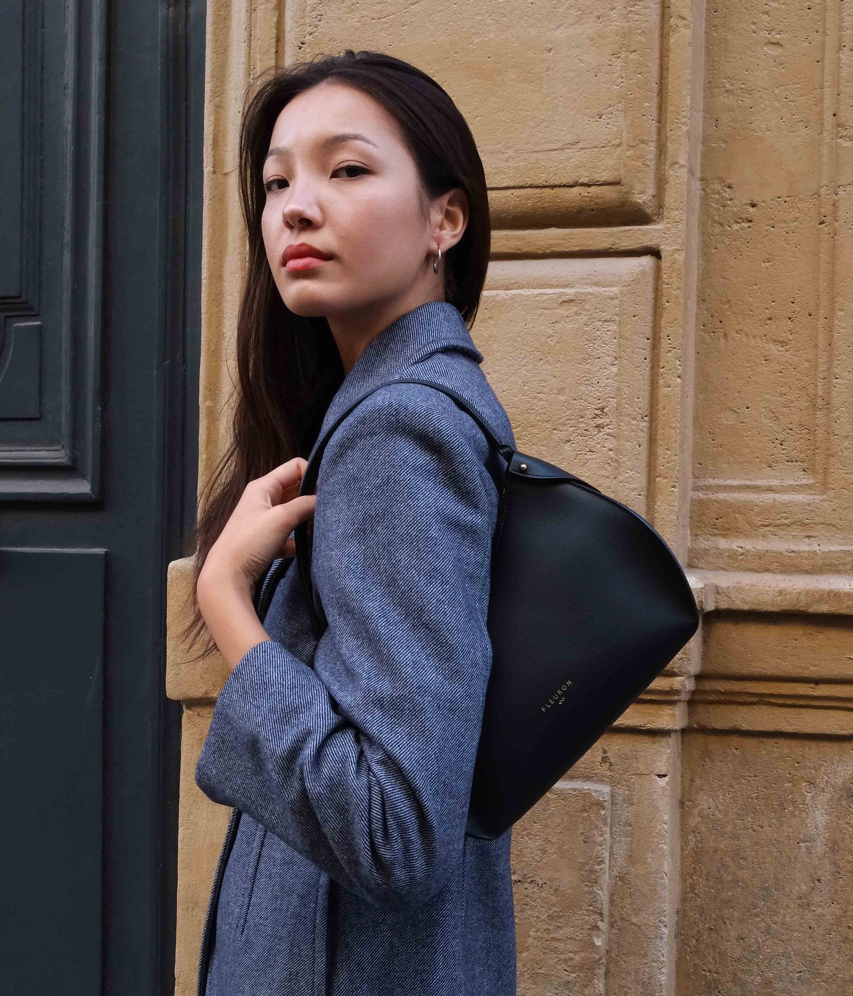 Our black handbag is carefully handcrafted in our workshops in Italy, using the finest smooth calf leather, complemented by refined gold finishes. Whether carried by hand or on the shoulder with its additional strap, this bag is a perfect complement to any look. Its secure zipper opens to a beige interior, offering ample and elegant space for your essentials.