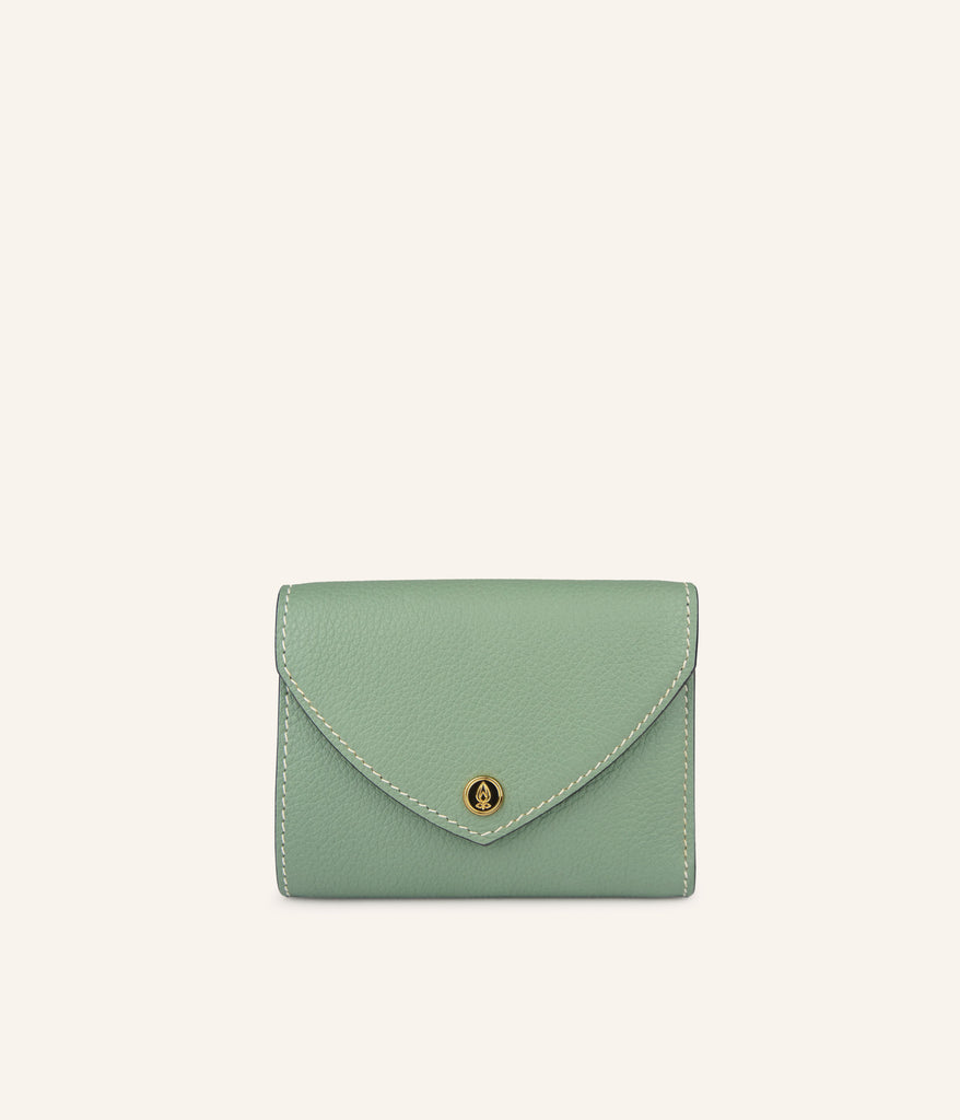 The Via wallet in Almond Green captivates with its soft, refined tone, a symbol of natural and calming elegance. Crafted from high-quality grained calfskin, it combines clean lines with delicate finishing. Compact and functional, it features well-organized compartments for cards and bills while fitting easily into your bag. An Italian creation that reflects Fleuron’s artisanal craftsmanship and timeless sense of elegance.
