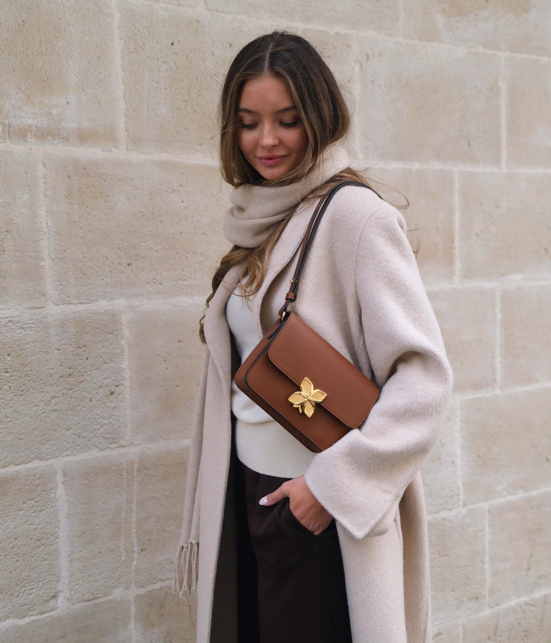 Embrace the timeless warmth of the Mini Hortensia in Marron, crafted from fine-grained calf leather that blends natural elegance with subtle sophistication. Carefully handmade in our Italian ateliers, this piece reflects the understated refinement of true luxury, elevated by exceptional craftsmanship.