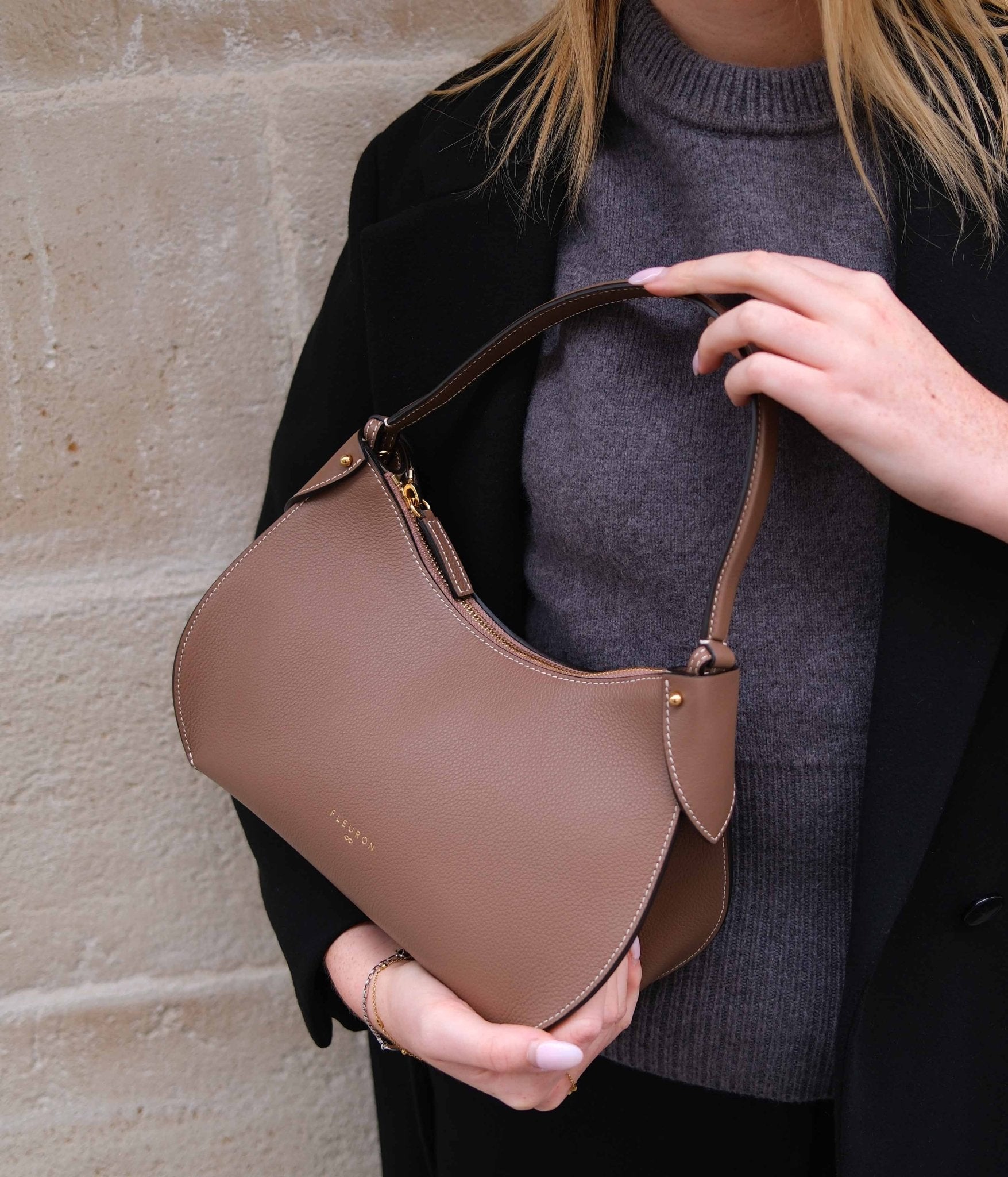 With its soft, nuanced tone, our Marron Glacé Pivoine bag brings a natural and understated elegance to your wardrobe. This light brown with warm undertones, somewhere between soft cocoa and creamy beige, pairs beautifully with refined, light-toned outfits. It goes especially well with shades like ecru, blush pink, or warm beige for a gentle, balanced look. In colder months, it also complements deeper hues like slate blue, sage green, or charcoal grey, creating a clean and sophisticated silhouette.