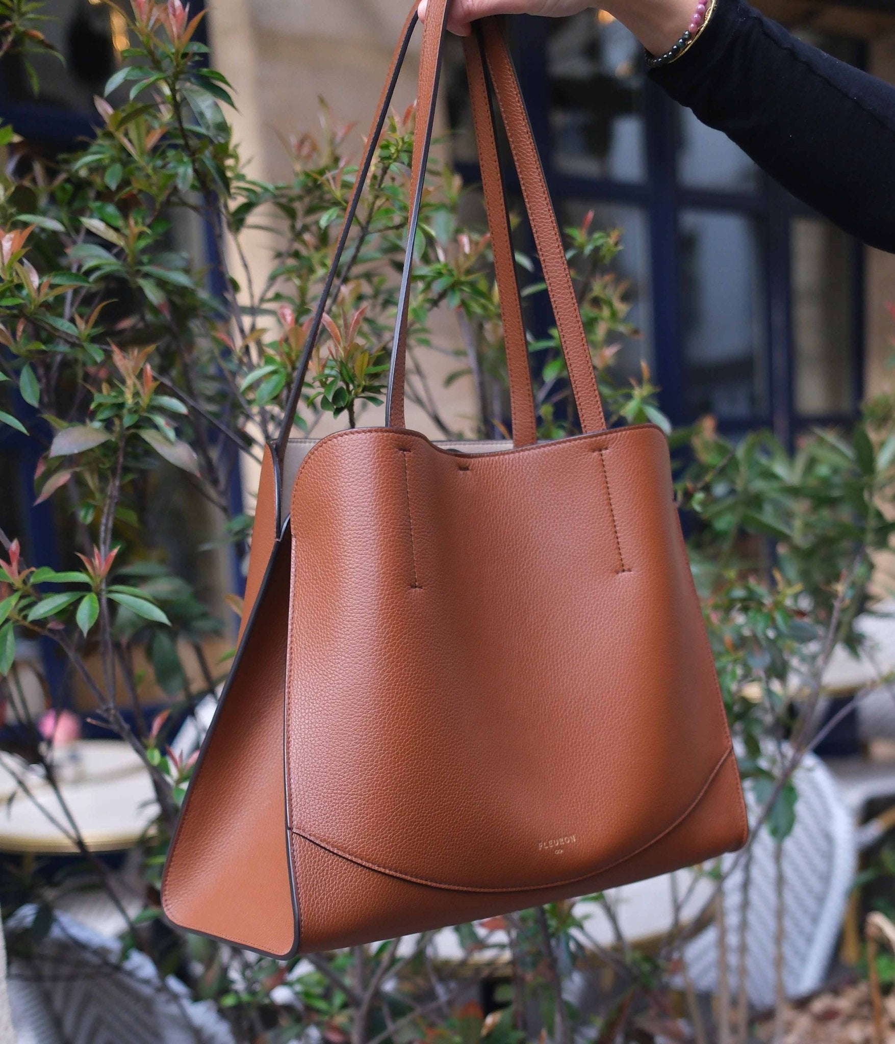 The Medium Oak tote in Marron combines warmth, sophistication, and practicality, establishing itself as a key piece in the feminine wardrobe.